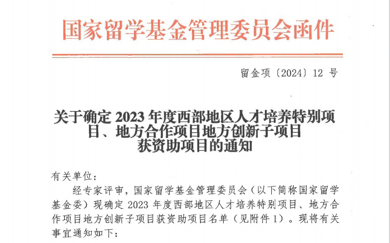 大发娱乐 获批国家留学基金委“西部地区人才培养特别项目、地方合作项目地方创新子项目”