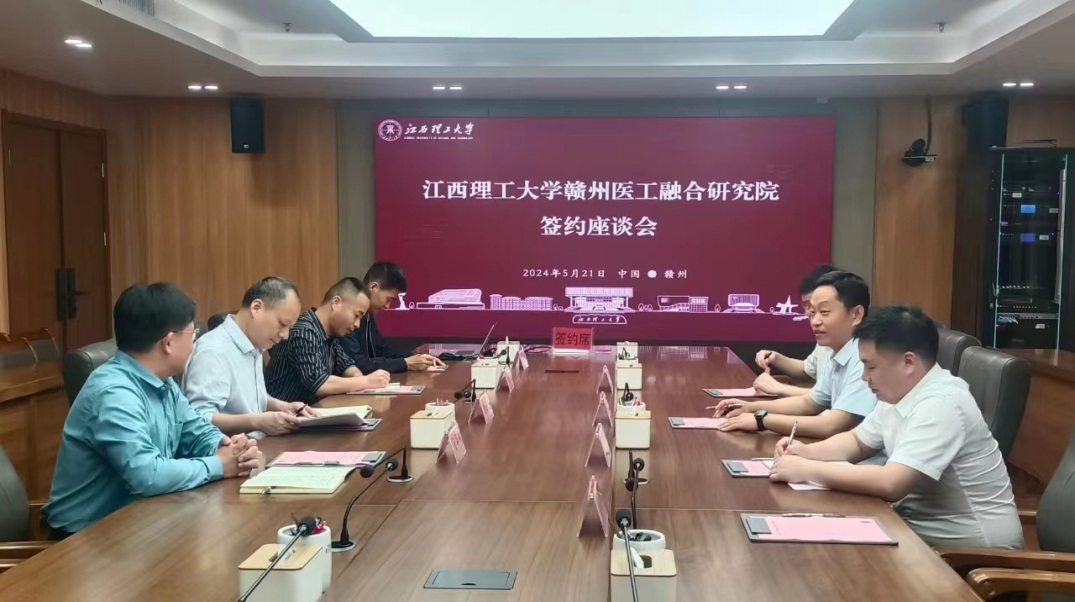 赣州医工融合研究院签约仪式在三江校区濂溪楼1号会议室举行。校党委常委、副校长唐云志、赣州市人民医院(南方医院赣州医院)副院长邵银进等出席签约仪式。签约仪式由校科学技术处副处长聂华平主持。