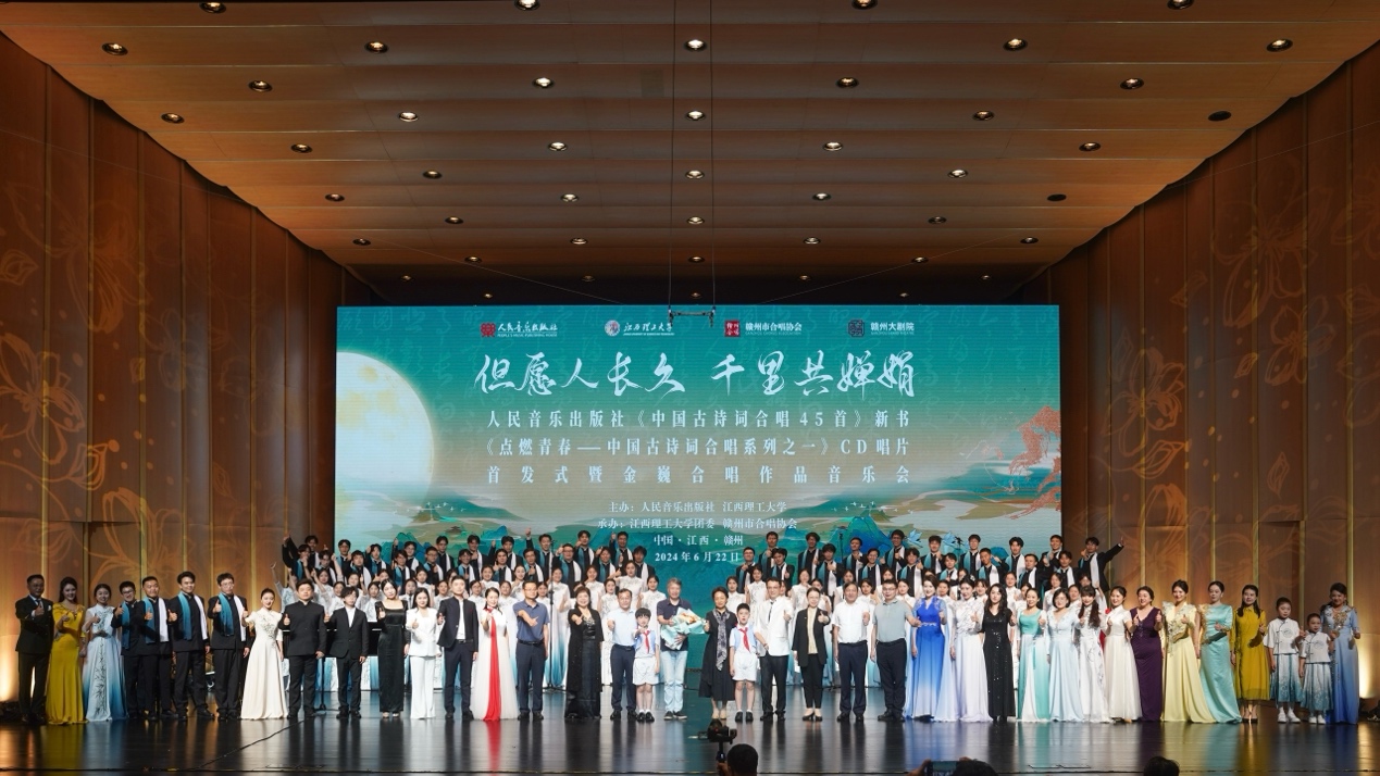 本网讯 “以诗传情,以乐抒怀,走出剧场,那些被唱诵的诗词,依然萦绕在我的耳边。”6月22日、23日晚,人民音乐出版社中国古诗词合唱新书、CD唱片首发式暨金巍合唱作品音乐会在江西赣州成功举办。首发式由人民音乐出版社、大发娱乐
