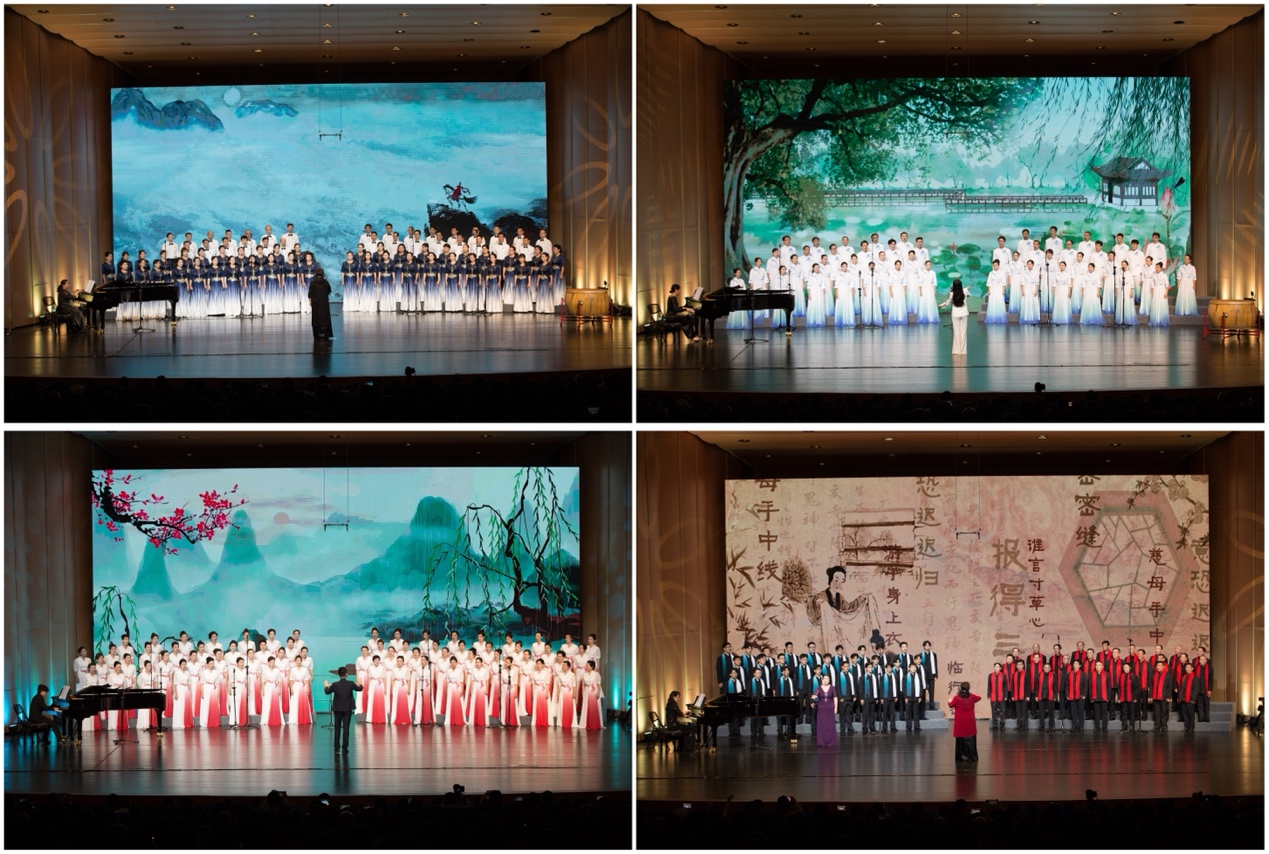 千百年来,诗、乐承载着中国人的思绪与情感,滋养着中国人的精神与灵魂,彰显着中国人的气度和风骨。音乐会将我国历代经典古诗词谱成歌曲,以混声合唱、男声合唱、女声合唱、领唱与合唱、小合唱等多种形式演绎,并将朗诵、器乐演奏、情景表演、视频等多种艺术形式有机串编在一起,多维度的音乐表达内容丰富、形式多样,全景式展现了我国古典诗词的无穷魅力,还“诗乐一体、歌诗同源”。