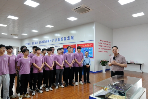 青年学子一道感受我国稀土行业科技进步,见证国家稀土战略在江西、在赣州的生动实践,并在展厅为青年学子上一堂思政大课,学子们深受教育、深受启发!