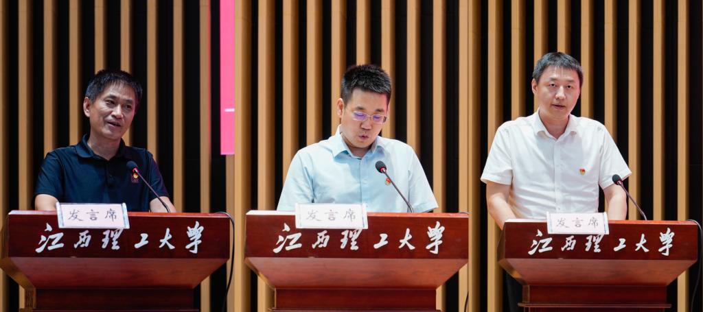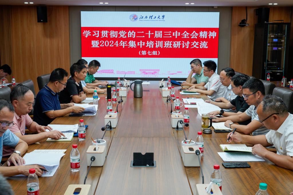 杨斌表示,及时学习并贯彻落实党的二十届三中全会精神和江西高校党委书记、校长提升政治能力培训班精神,能有效提升全体干部的政治能力和业务能力,开拓视野,凝聚共识。杨斌强调,要在应用研究和基础研究之间寻求更加均衡的发展,在新增学位点等方面继续努力;要关注优势学科和新兴学科发展的必要性;要依托国家和地方的支持,加强校企合作,提升学科建设与技术研发能力;要促进高层次人才培养,加强团队廉洁自律建设和内部凝聚力。