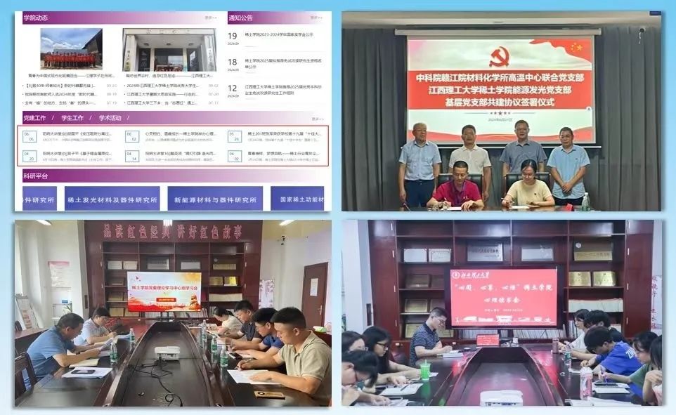党委深入学习贯彻习近平总书记关于稀土产业发展的重要指示精神,以推进有组织科研为切入点,研究出台《加强有组织的科研实施办法》,高标准打造稀土磁性材料研究所、稀土发光材料研究所、新能源材料与器件研究所、稀土拔尖创新人才培养研究所等四大研究所,为国家稀土功能材料创新中心(稀土领域唯一的国家级制造业创新中心)成功获批和全面验收提供了坚实支撑,近年来,研究所承担省部级科研项目200余项,发表高水平论文500余篇,搭建了钕铁硼晶界扩散中试生产线、稀土光纤中试示范线、表面防护中试线等试验线,自主研发的“轨道交通用特种磁材”等多项科技成果达到了国际领先水平,得到各级领导高度肯定。今年以来,获国家科技部重点研发项目子课题2项、国家自然科学基金3项,江西省自然科学基金项目9项,科研成果转化额近千万元,获批金属磁性材料及器件江西省重点实验室,发表高水平高质量论文19篇。