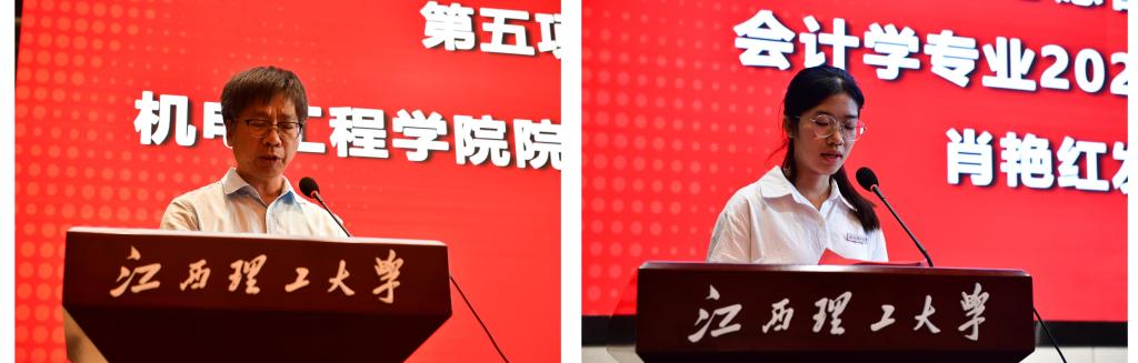 学生代表、校友工作志愿者协会会长、会计学专业2022级本科生肖艳红发言。她简要介绍了协会的基本情况,分享了参与校友活动的感受,表示未来将与协会全体成员一起以更高的热情、更深的热爱投入到校友工作当中。