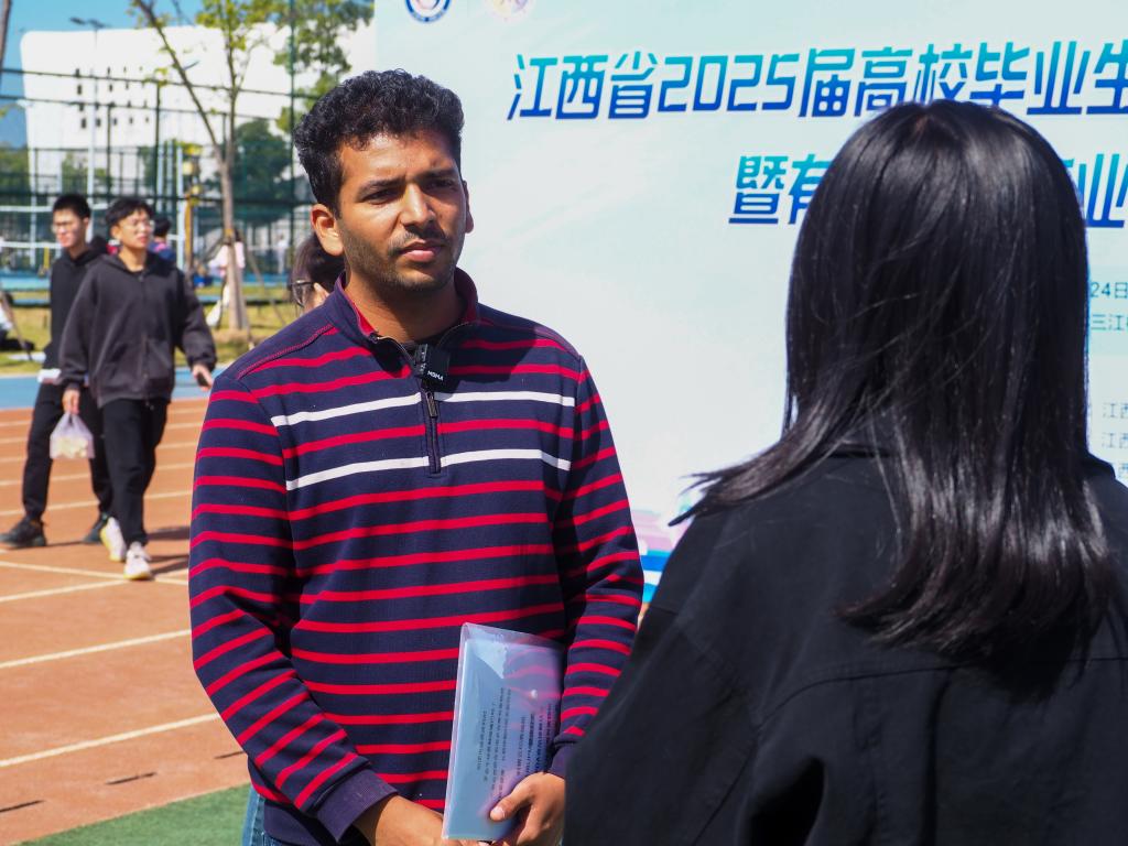 来自地质工程的2023级硕士国际生穆常青也积极参与了招聘会,从一开始他便怀揣着在中国长期发展和就业的强烈愿望。谈到在中国就业的国际友人优势时,他认为主要取决于个人优势,双语能力尤其是中文能力会带来优势。在中国就业会面临到一些困难,主要是习俗差异,但他深知这是需要克服的。作为地质工程专业的他,对与地质、矿业相关且有海外项目的企业和岗位兴趣浓厚,大发娱乐