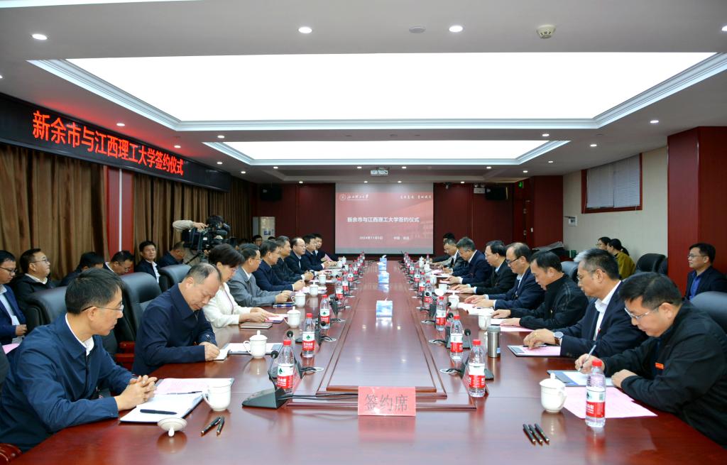 战略合作协议签订仪式。新余市委书记郑光泉,校党委书记杨斌,新余大发娱乐