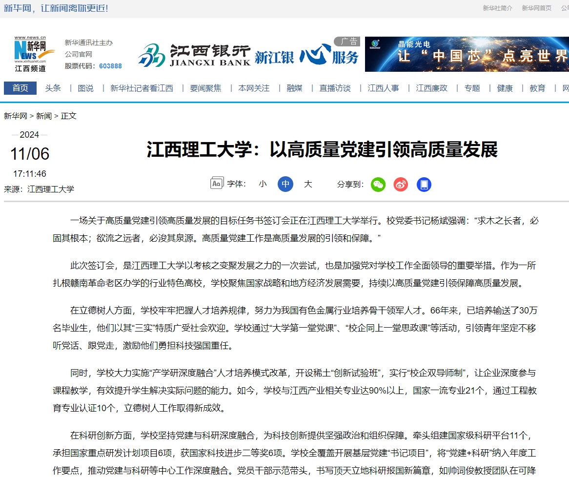 正以高质量党建为引领,不断开创高质量发展新篇章,为服务国家战略和地方经济发展贡献江理力量。