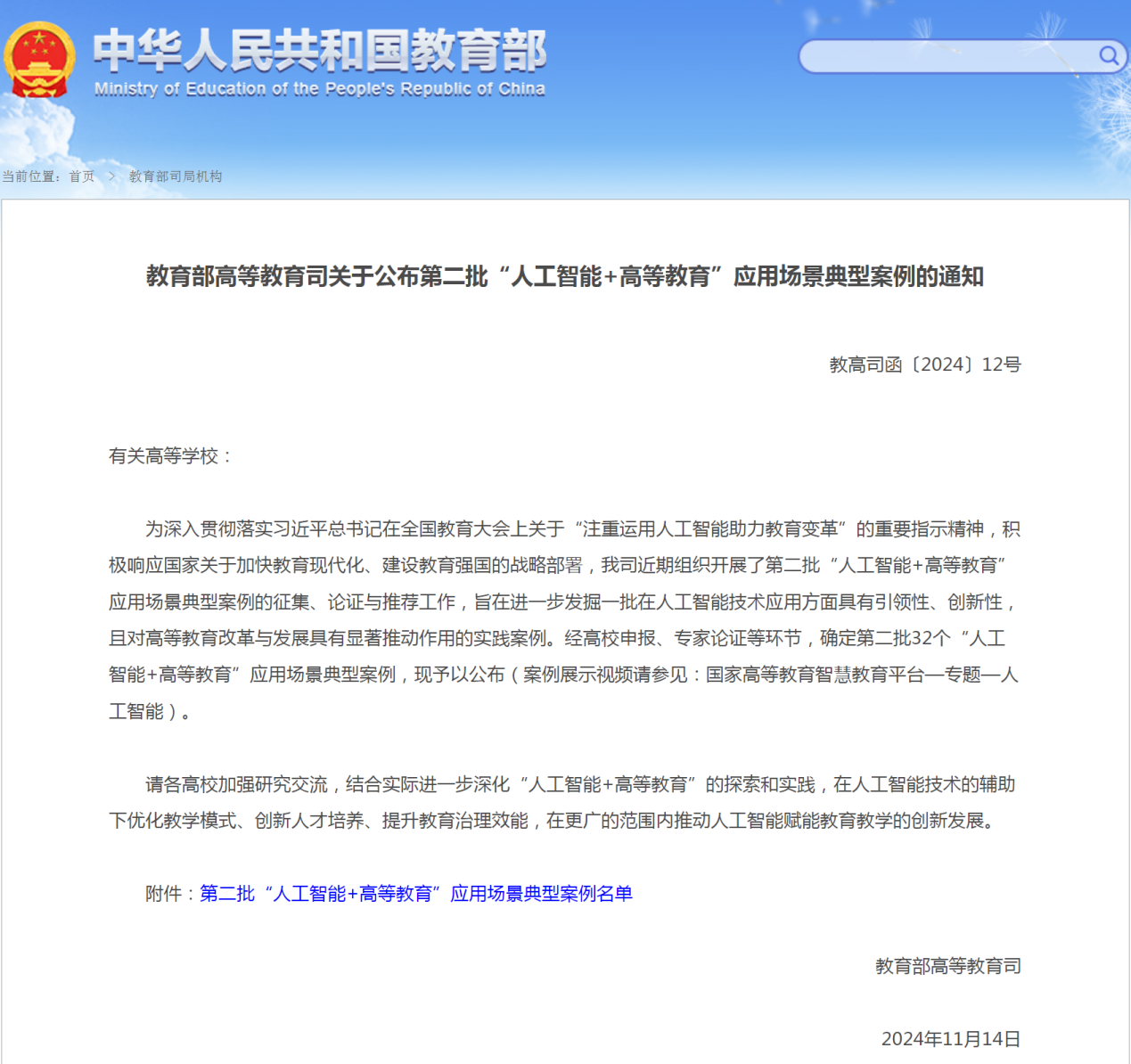 本网讯 近日,教育部高教司公布了全国第二批32个“人工智能+高等教育”应用场景典型案例,大发娱乐