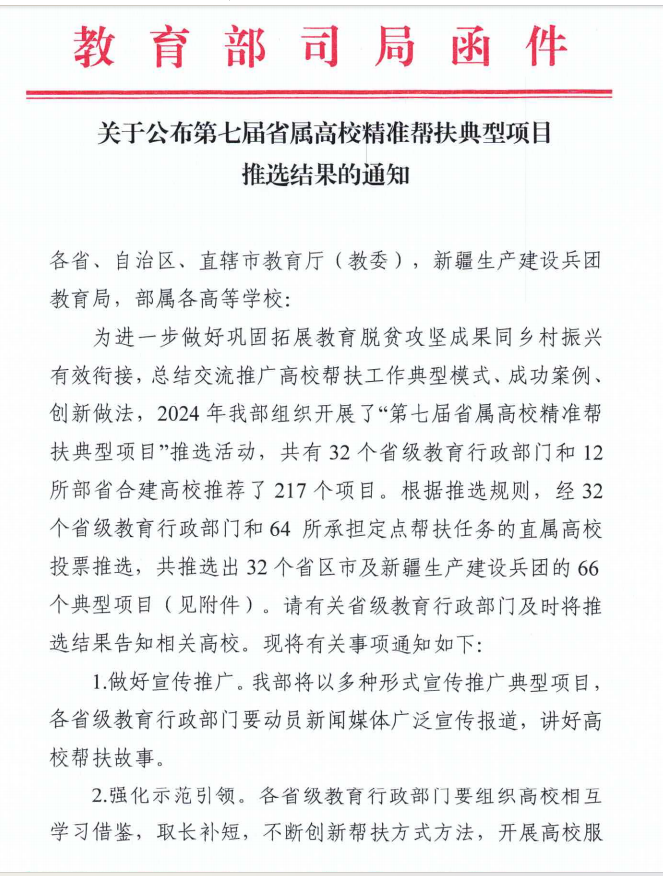 本网讯 近日,教育部公布了第七届省属高校精准帮扶典型项目推选结果,大发娱乐