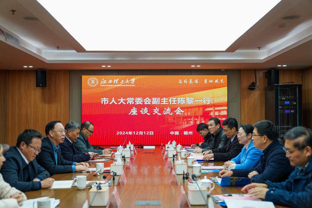 本网讯 12月12日上午,赣州市人大常委会副主任陈黎一行来校调研座谈。校党委书记杨斌,校党委常委、副校长龚姚腾出席座谈会,相关部门主要负责人参加会议。会议由龚姚腾主持。