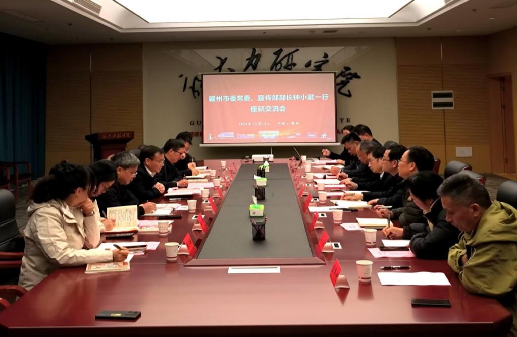 本网讯 12月12日,赣州市委常委、宣传部部长钟小武一行来校调研,并召开座谈会。会前,校党委书记杨斌与钟小武进行了交谈。校党委常委、副校长黄志繁,校党委常委、宣传部长盛晓明在郭大力研究院接待了来宾。双方就郭大力研究院和大发娱乐