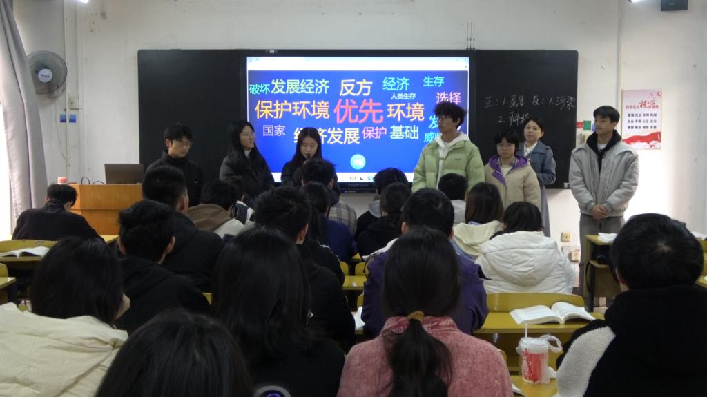 思政课教师武立敬在其讲授的《习近平新时代中国特色社会主义思想概论》课上,针对专题十二“建设社会主义生态文明”开展了“师生同台”教学活动。通过让学生介绍所学专业领域的生产活动并结合科技前沿成果思考绿色低碳转型的过程,将专业学习、学科发展和国家发展的大政方针紧密结合起来。这一教学模式充分体现了双主共进、精准滴灌、启发互动、亲师信道的教学理念,取得了显著成效,不仅丰富了思政课的教学内容,也极大地提升了学生的学习兴趣和参与度,真正让思政课“亲”起来。