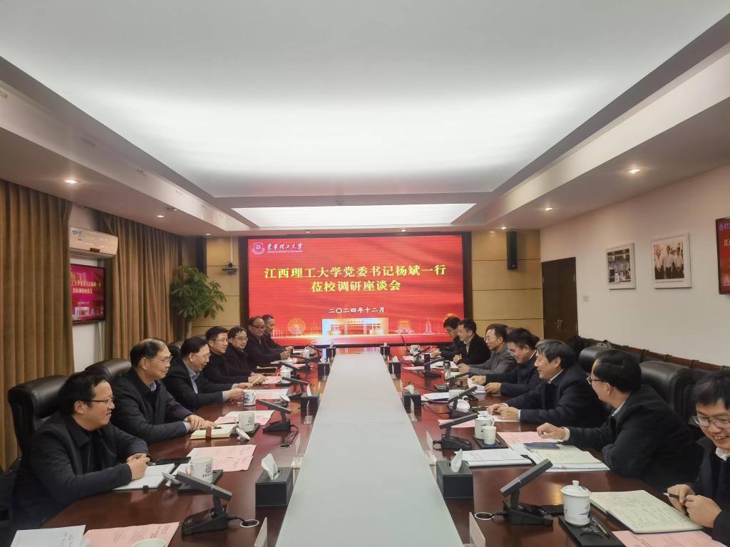 本网讯  12月26日下午,校党委书记杨斌带队前往东华理工大学调研交流。东华理工大学党委书记张福庆会见了杨斌一行,东华理工大学党委副书记、校长罗仙平主持座谈交流会。大发娱乐 党委副书记徐志峰,党委常委、副校长廖春发、黄志繁,东华理工大学党委常委、副校长杨波及两校相关部门负责人参加座谈。