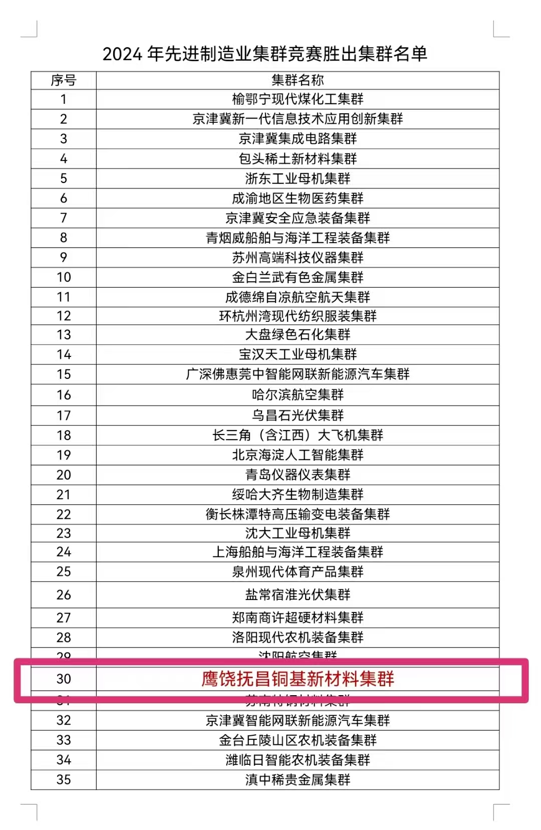”“四个一”全力推动鹰饶抚昌铜基新材料集群成功上榜2024年国家先进制造业集群名单。