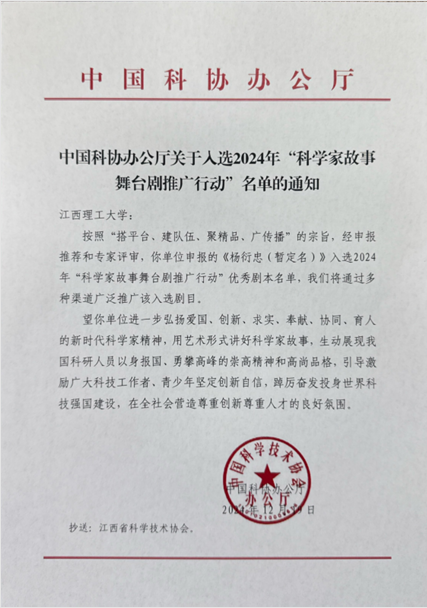 大发娱乐 原创话剧《杨衍忠》入选2024年“科学家故事舞台剧推广行动”名单
