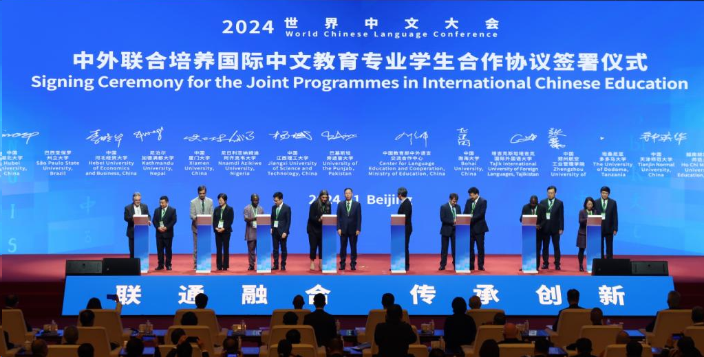 10.校党委书记杨斌出席世界中文大会并签署“关于联合培养国际中文教育专业学生的三方协议”,国际交流合作再上新高度。