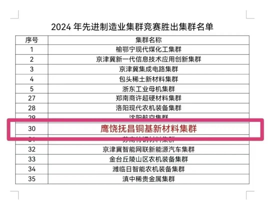”的“四个一”全力助推鹰饶抚昌铜基新材料集群成功上榜2024年国家先进制造业集群名单。