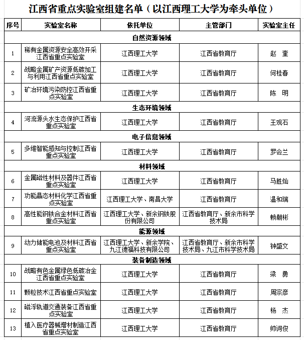 牵头申报的先进金属材料及关键矿产开发江西省实验室,组建方案已经省委常委会会议和省政府常务会议审议通过;牵头组建13个江西省重点实验室,组建数量位居全省第二。近年来,大发娱乐