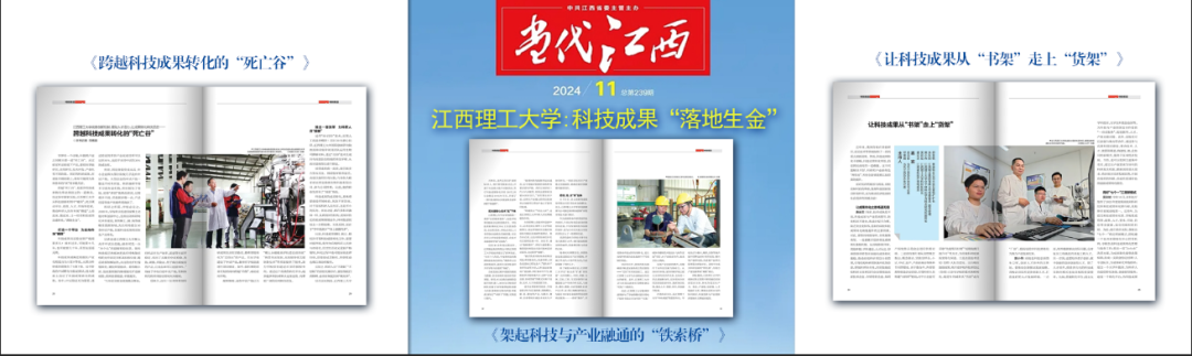 高度重视科研创新及成果转化,聚焦稀土、铜、钨、锂电、钢铁五大资源综合开发与利用特色领域,提出了“服务国家战略需求、服务区域和行业发展”的办学使命,“建设江西一流、全国较大影响、行业地位突出、区域最具贡献的有特色高水平大学”的办学目标,“以贡献求支持、以特色争优势、以创新谋发展”的办学思路,做好有组织科研攻关,探索出了一条跨越科技成果转化“死亡谷”的“七个一”的江理新模式,即组建一个管理机构、推出一套改革方案、形成一支专业队伍、建立一个孵化园区、建设一个转化平台、成立一个专项基金、搭建一个服务平台。