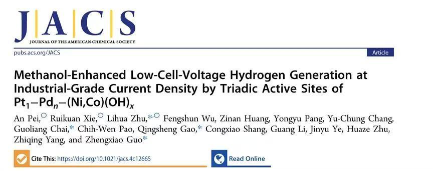 (功能晶态材料化学江西省重点实验室)朱丽华教授课题组在能源催化领域取得重要突破,成果在国际顶级期刊《Journal of the American Chemical Society》以“Methanol enhanced low-cell-voltage hydrogen generation at industrial-grade current density by triadic active sites of Pt1–Pdn–(Ni,Co)(OH)x”为题发表论文,大发娱乐