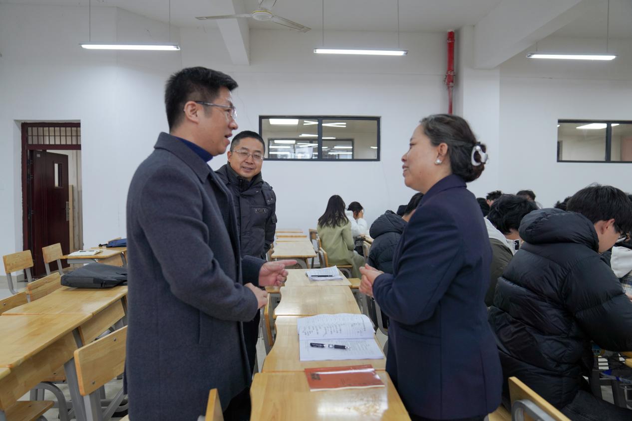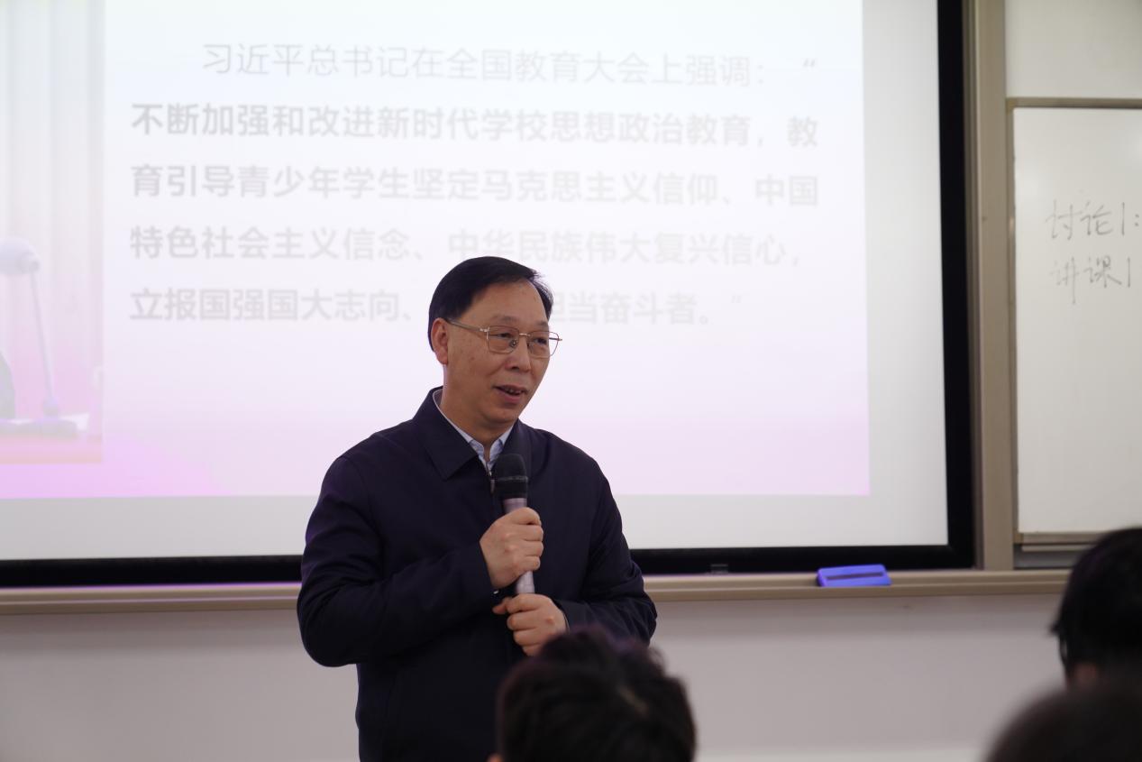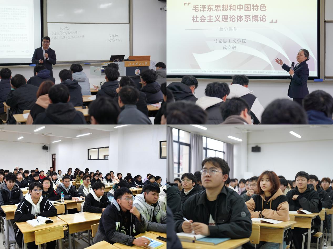 校党委书记杨斌在三江校区认真听取了王邦辉老师讲授的《毛泽东思想和中国特色社会主义理论体系概论》和吴光辉老师讲授的《中国近代史纲要》课程。课间,杨斌与同学们进行了亲切交流,分析了大学生在新时代的角色与使命,特别强调思想政治教育在塑造学生品德和价值观方面的作用。同时,寄语同学们要做具有德学兼修、家国情怀、国际视野、能力卓越的时代新人,在今后的学习生活中秉持“三实”精神,以积极姿态迎接未来的各种挑战。