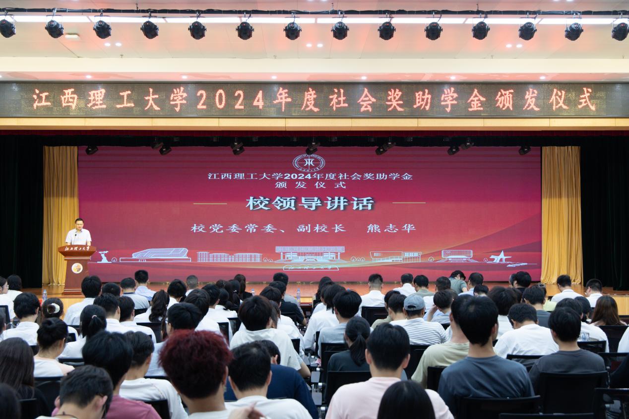 在三江校区三实楼多功能厅举行2024年度社会奖助学金集中颁发仪式。惠明慈善基金有限公司、金诚信矿业管理股份有限公司、江西金力永磁科技股份有限公司、共青城瑞钛管道科技有限公司、江西万年青水泥股份有限公司、赣州腾远钴业新材料股份有限公司、广盈控股集团有限公司代表,校党委常委、副校长熊志华出席,各大发娱乐