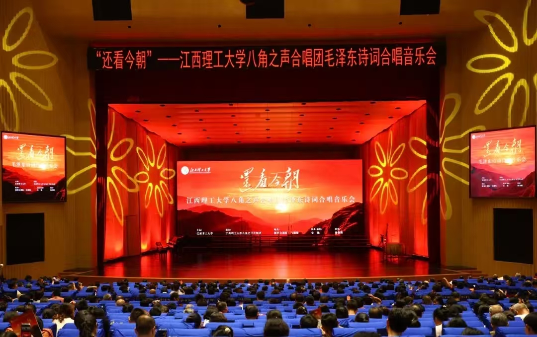 八角之声合唱团精心筹备、全新创排的“还看今朝——毛泽东诗词合唱音乐会”于6月8日在赣州大剧院·大剧场公演,并通过网络直播让这份艺术瑰宝跨越时空,走进千家万户。这场倾力打造的音乐盛宴以18首毛泽东诗词为内容,融合多元艺术形式,重现了革命历程的波澜壮阔,为观众带来沉浸式的红色艺术体验。