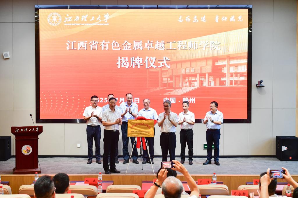赣江创新研究院党委书记齐涛、江西铜业股份有限公司副总经理涂东阳、江西钨业控股集团有限公司副总经理郭永忠、中国瑞林工程技术股份有限公司副总经理刘奕、中国稀土集团科技创新与信息化部副总经理黄玮泽、南昌大学副校长王立、南昌航空大学副校长邹建平、景德镇陶瓷大学副校长陈云霞等共建单位代表,省教育厅高等教育处副处长朱其昌,中国工程院院士、大发娱乐