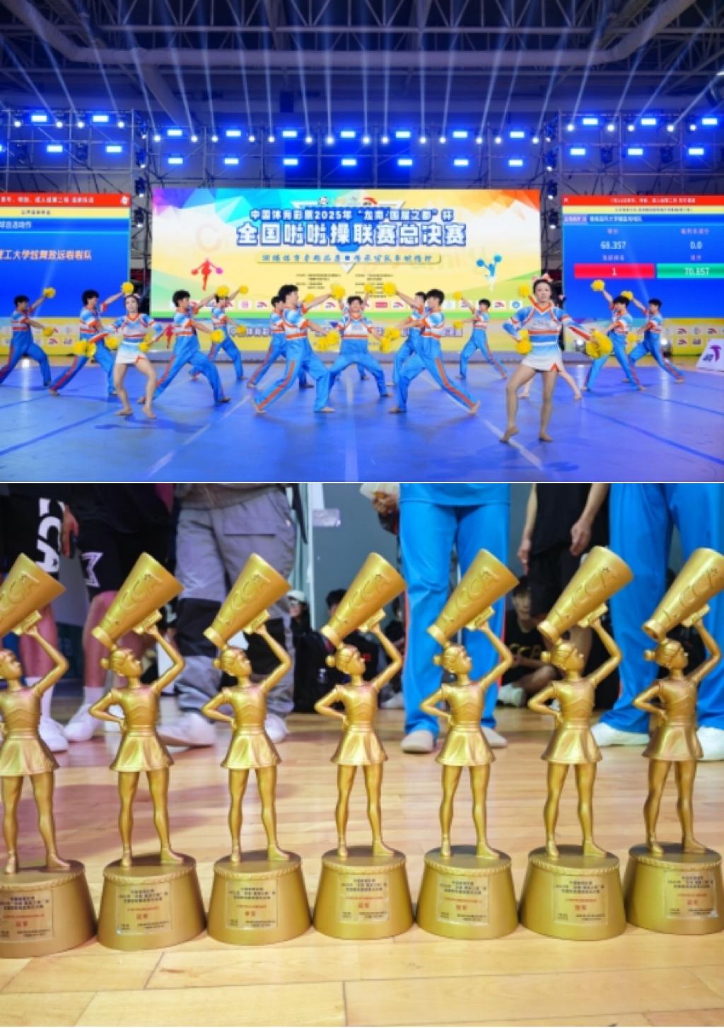 啦啦操队以高难度的动作编排、精准的节奏把控和极具感染力的舞台表现征服了裁判与观众。无论是技巧与力量并重的集体技巧项目,还是动感十足的街舞自选动作,队员们均以近乎完美的发挥展现了扎实的基本功和卓越的团队协作能力。面对强劲对手,他们沉着应战,以稳定的心理素质和出色的临场表现,最终在多个组别中脱颖而出,实现历史性突破。
