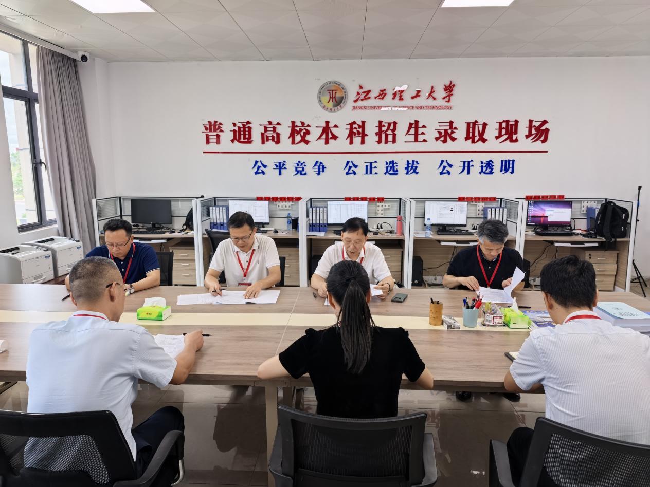 本网讯 7月20日上午,校党委书记杨斌,党委常委、副校长董冰岩、熊志华来到大发娱乐 2025年本科招生录取现场,看望慰问招生录取工作人员,并与现场招录工作人员进行了亲切交流,详细了解本科招生录取进度以及江西省投档录取等方面的情况。