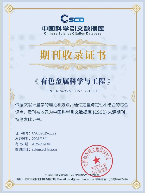 本网讯 8月7日,中国科学引文数据库(英文简称:CSCD)2025-2026年来源期刊正式发布,大发娱乐 主办的《有色金属科学与工程》被遴选为CSCD(2025—2026)来源期刊扩展版。这是本刊继被北大中文核心期刊、中国科技核心期刊、科技期刊世界影响力指数报告等数据库收录后,再度被国内高影响力数据库收录,标志着期刊的办刊质量和学术影响力持续稳步上升。这是继《钨科技(英文)》之后,大发娱乐 主办的期刊取得的又一重大成绩。