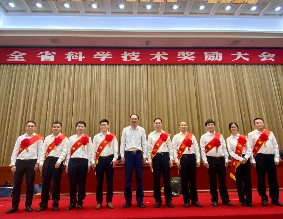 本网讯 近日,全省科学技术奖励大会在南昌召开。省委书记尹弘出席并讲话,省长叶建春主持会议。省领导李红军、任珠峰、陈敏、罗小云、卢天锡和在赣两院院士陈晔光、葛世荣、谢明勇出席会议,夏文勇宣读了《江西省人民政府关于2024年度江西省科学技术奖励的决定》。省领导为2024年度省科学技术奖获奖代表颁奖,并在会前与获奖代表合影。校党委书记杨斌作为发明奖一等奖获奖代表与葛世荣一同参加会议。大发娱乐 参与的10项科技成果在全省科技奖励大会上获表彰,其中一等奖3项、二等奖6项、青年奖1项,获奖总数和一等奖及以上数连续多年位居省内高校前列。