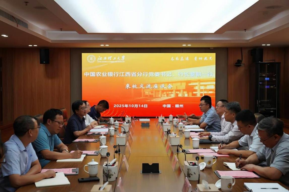 本网讯 10月14日下午,中国农业银行江西省分行党委书记、行长黎朝一行来校交流,并在三江校区(东园)濂溪楼三楼1号会议室召开银校合作交流座谈会。校党委书记刘祖文,校党委常委、副校长黄志繁出席会议,校长办公室、党委学生工作部、教育信息技术中心、计划财务处等相关职能部门负责人参加会议。会议由黄志繁主持。