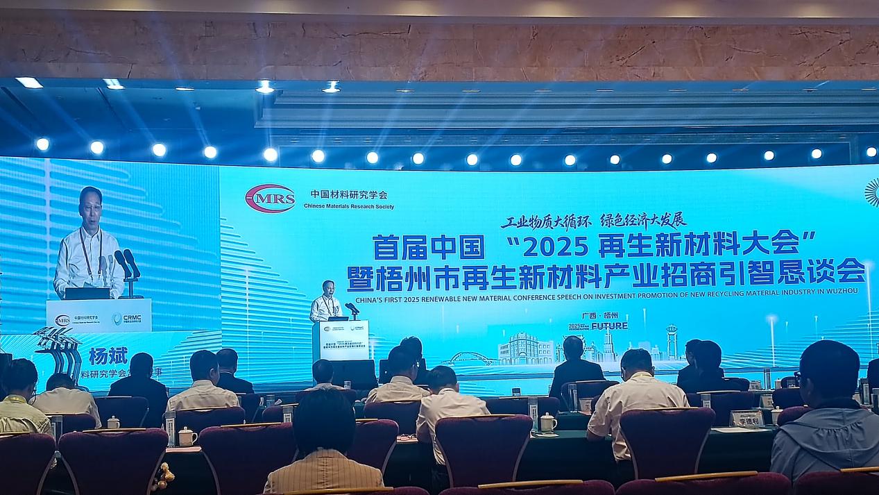 本网讯 10月17日至20日,由中国材料研究学会、广西壮族自治区科学技术协会、广西壮族自治区工业和信息化厅、广西壮族自治区园区办与梧州市人民政府联合主办的首届中国“2025再生新材料大会”在广西梧州隆重举行。本次大会以“工业物资大循环,绿色经济大发展”为主题,汇聚了来自全国新材料领域的顶尖专家、学者和产业界代表。
