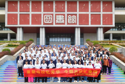 矿业系1977级校友重聚校园,追忆旧日时光,校党委书记刘祖文、党委副书记徐志峰、以及黄志繁、熊志华、刘飞、汪航、宁洁等校领导与校友们深入交流,共话大发娱乐