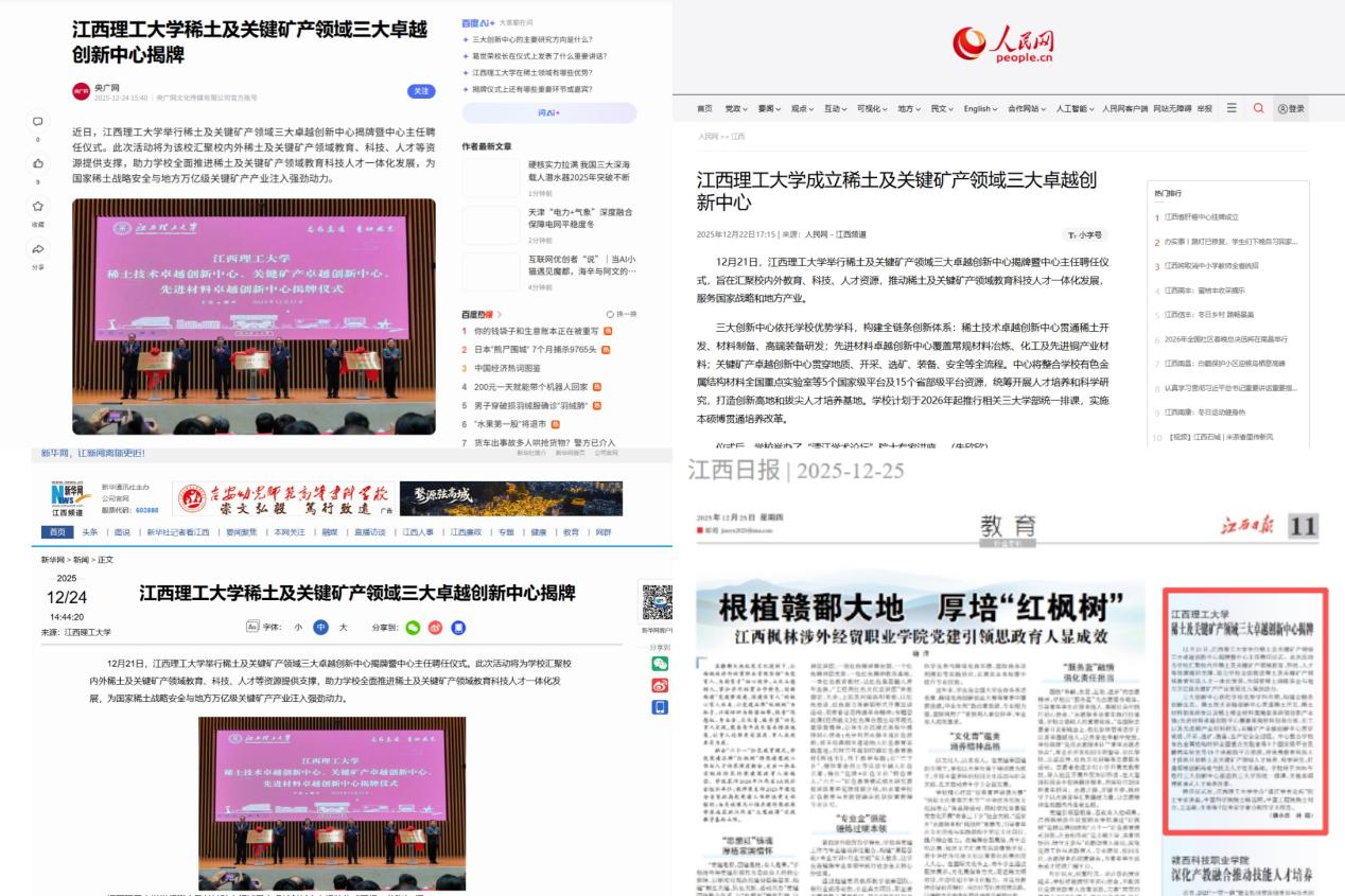 《央广网》《新华网》《中国教育新闻网》在重要版面进行报道,强调三大中心为我国产业链供应链韧性提供的坚实科技支撑;《人民网》在江西频道显著位置刊发新闻消息,阐述大发娱乐