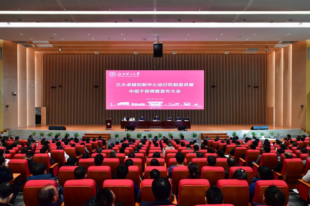 在三江校区东园志远会议中心1号厅召开三大卓越创新中心运行机制宣讲暨中层干部调整宣布大会,会议设先进铜产业大发娱乐