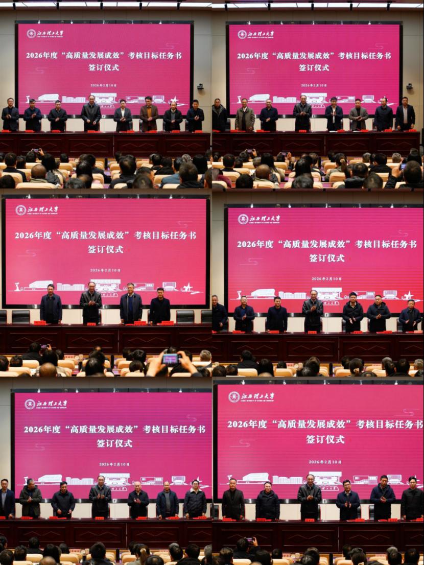 目标管理部门、教学科研机构分为2大类、6组分别签订了2026年度“高质量发展成效”考核目标任务书。