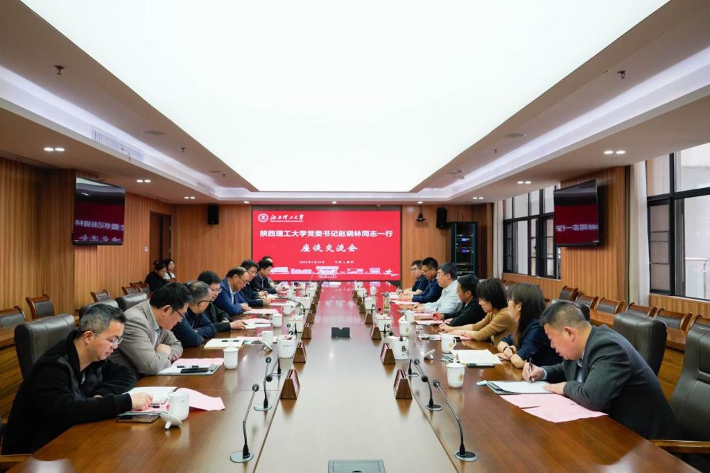 本网讯 3月25日,陕西理工大学党委书记赵晓林一行来校交流,双方在三江校区濂溪楼会议室进行了座谈。中国工程院院士、校长葛世荣,党委副书记徐志峰出席座谈会。
