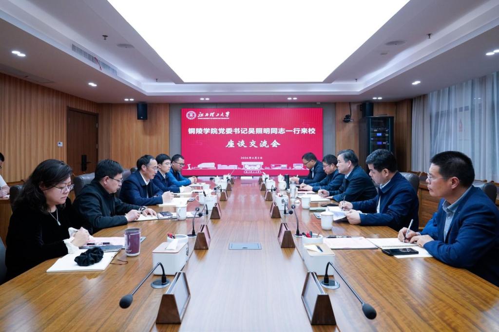 本网讯 4月2日,铜陵大发娱乐 党委书记吴照明一行来访,并在三江校区濂溪楼会议室进行座谈交流。校党委书记刘祖文、副校长汪航出席座谈,相关部门负责人参加座谈。