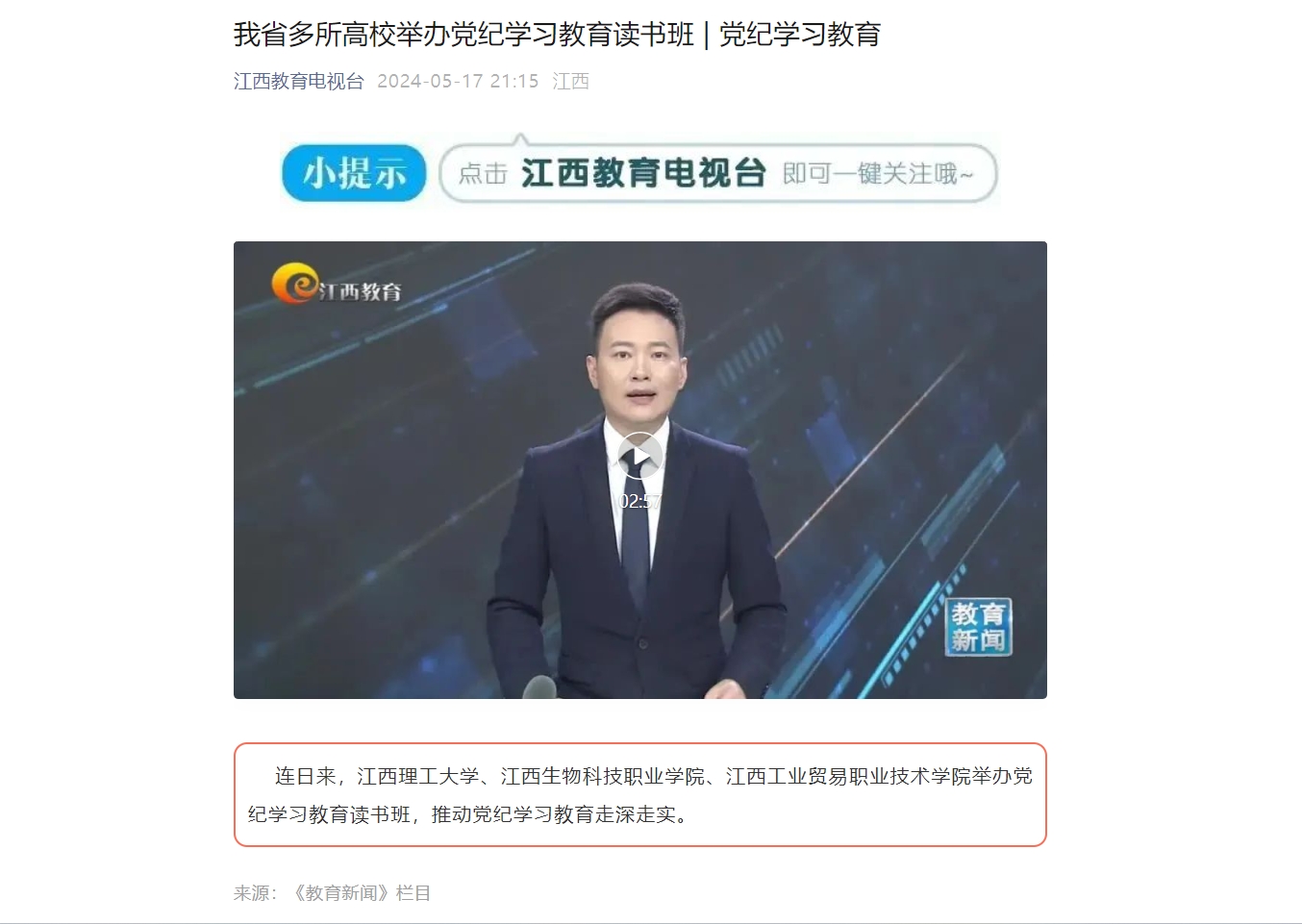 连日来,大发娱乐 、江西生物科技职业大发娱乐 、江西工业贸易职业技术大发娱乐 举办党纪学习教育读书班,推动党纪学习教育走深走实。