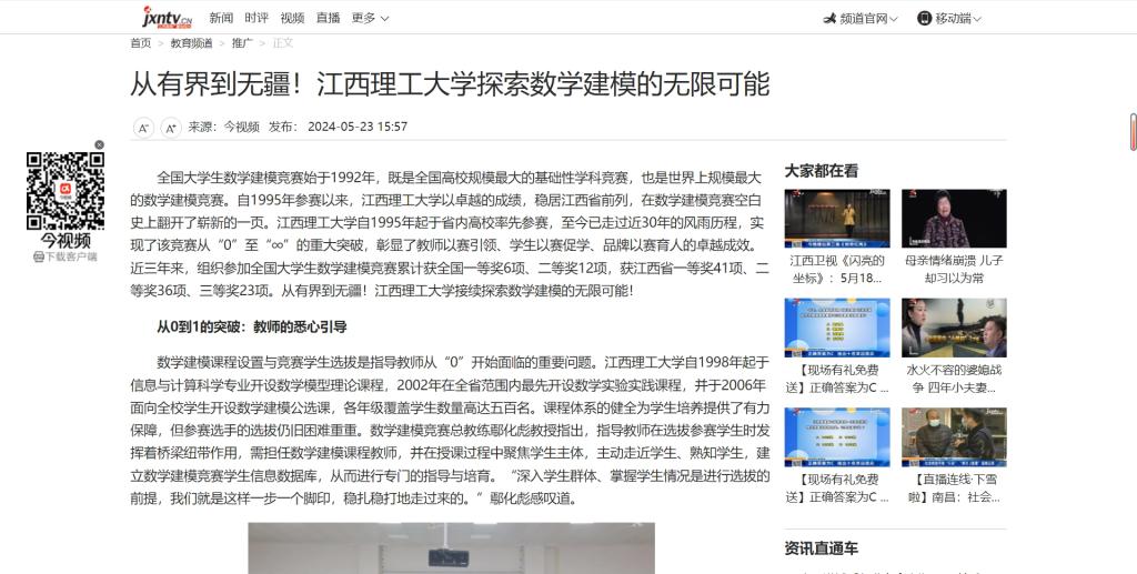 以稳居江西省前列的成绩在全国大学生数学建模竞赛空白史上翻开了崭新的一页。