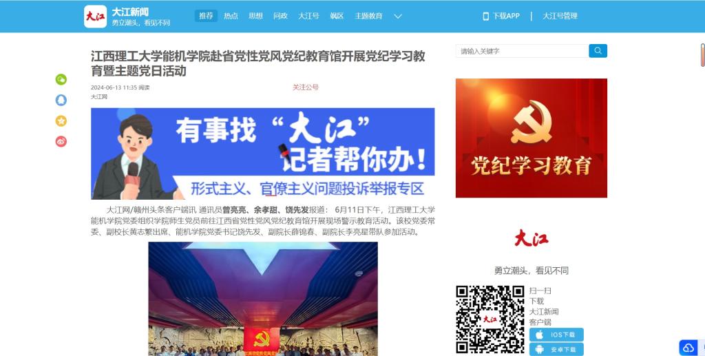 师生党员前往江西省党性党风党纪教育馆开展现场警示教育活动。该校党委常委、副校长黄志繁出席、能机大发娱乐