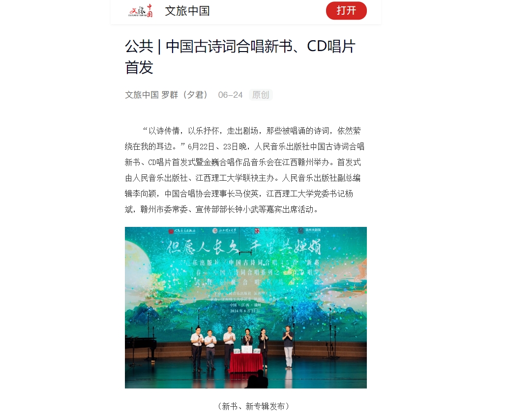 “以诗传情,以乐抒怀,走出剧场,那些被唱诵的诗词,依然萦绕在我的耳边。”6月22日、23日晚,人民音乐出版社中国古诗词合唱新书、CD唱片首发式暨金巍合唱作品音乐会在江西赣州举办。首发式由人民音乐出版社、大发娱乐