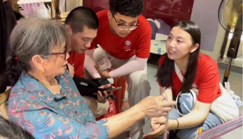 在太福古街,实践队拜会了杨村镇冬头帕非遗传承人赖淦妹,了解了非遗冬头帕的制作技艺及文化传承,还体验了冬头帕的制作过程,感受到客家妇女服饰的独特魅力及其背后的文化寓意。在走访杨村米酒酿造技艺传习所时,体验了工具清洗、浸糯米、蒸糯米到拌酒曲、发酵、取酒等米酒酿造的整个过程,在浓郁的酒香中感悟这一非遗技艺的文化内涵。