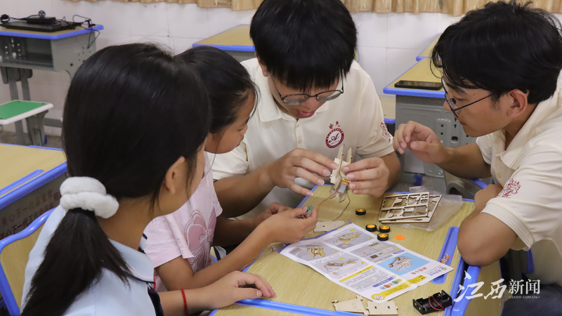 队员们精心设计了多个科技科普小课堂,带领孩子们利用简单的材料,动手制作科技小作品,让孩子们近距离感受科技的魅力。在制作过程中,队员们详细讲解了作品的科学原理和制作过程,帮助孩子们理解科技背后的逻辑。