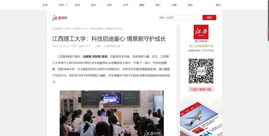 师生和家长们的热烈欢迎。孩子们表现出了极高的参与热情,家长们对活动给予了积极评价,希望孩子们能有更多这样的机会接触科技,开阔视野。在活动中,江理学子以实际行动践行社会责任,在乡村儿童的安全教育上贡献出青年力量。