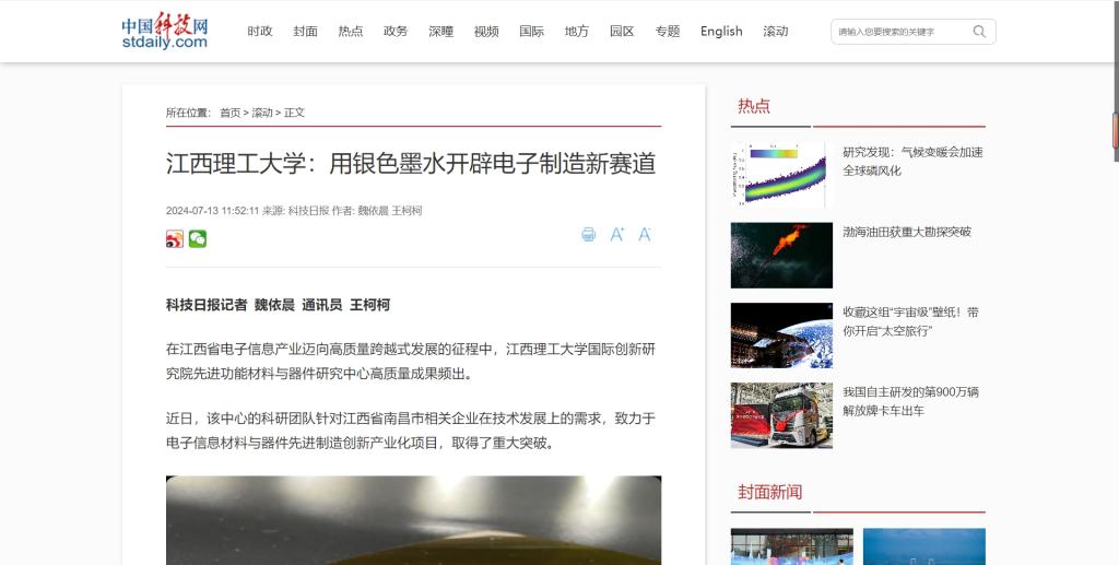 近日,该中心的科研团队针对江西省南昌市相关企业在技术发展上的需求,致力于电子信息材料与器件先进制造创新产业化项目,取得了重大突破。