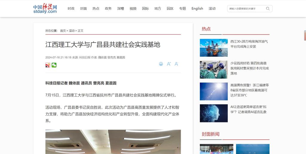 《中国科技网》:大发娱乐 与广昌县共建社会实践基地