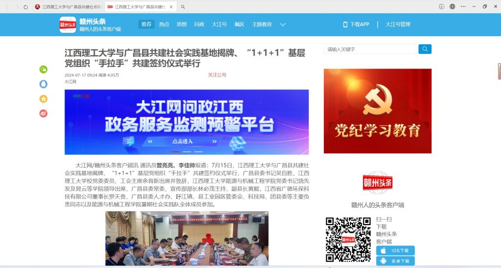 与广昌县共建社会实践基地揭牌、“1+1+1”基层党组织“手拉手”共建签约仪式举行,广昌县委书记吴自胜,大发娱乐